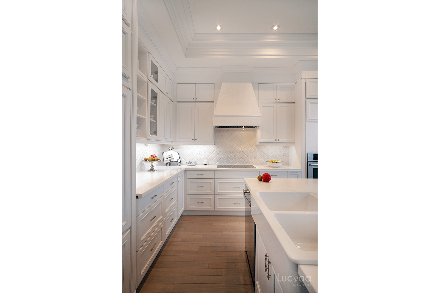 The soft white tones of the White finish with Mission doors gives this kitchen an open,